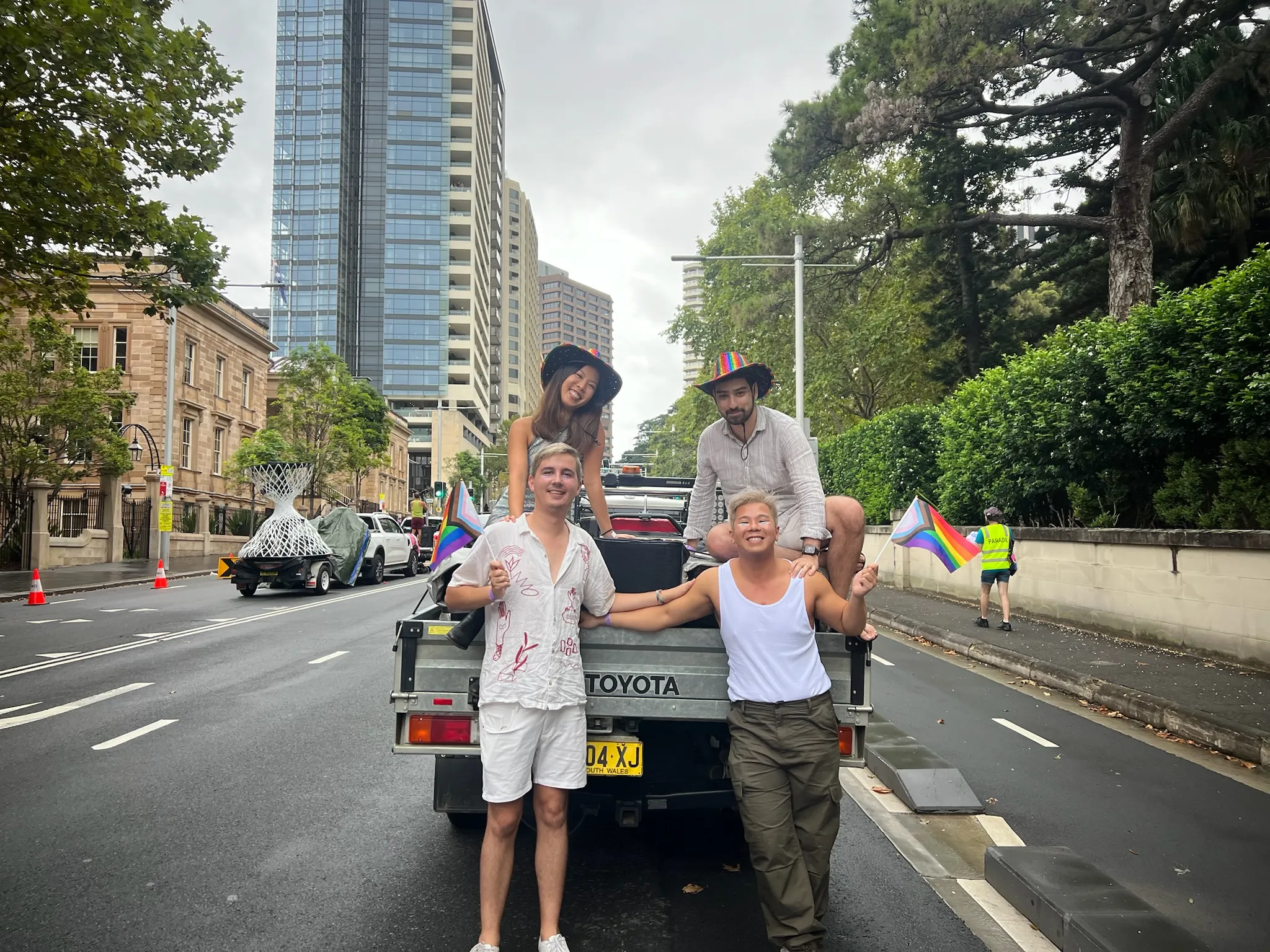 February and March were massively busy for us as we also went back to Sydney for Mardi Gras! This year was particularly special because we had the privilege of marching with the Brisbane Tritons in the parade. Sean, with Harry by his side, coordinated the entire operation (who knew organising 30+ people to dance 2km down Oxford St would be hard work?). Ed played a key role, using AI to generate Bella’s amazing designs for our custom-made speedos after multiple failed attempts with Budgie Smuggler’s designers. Dancing down Oxford St was an unreal experience, made even more special by sharing it with lovely friends like Zane and Chelsea (who generously drove our ute), Harry, Darcy, Heather, and JT.